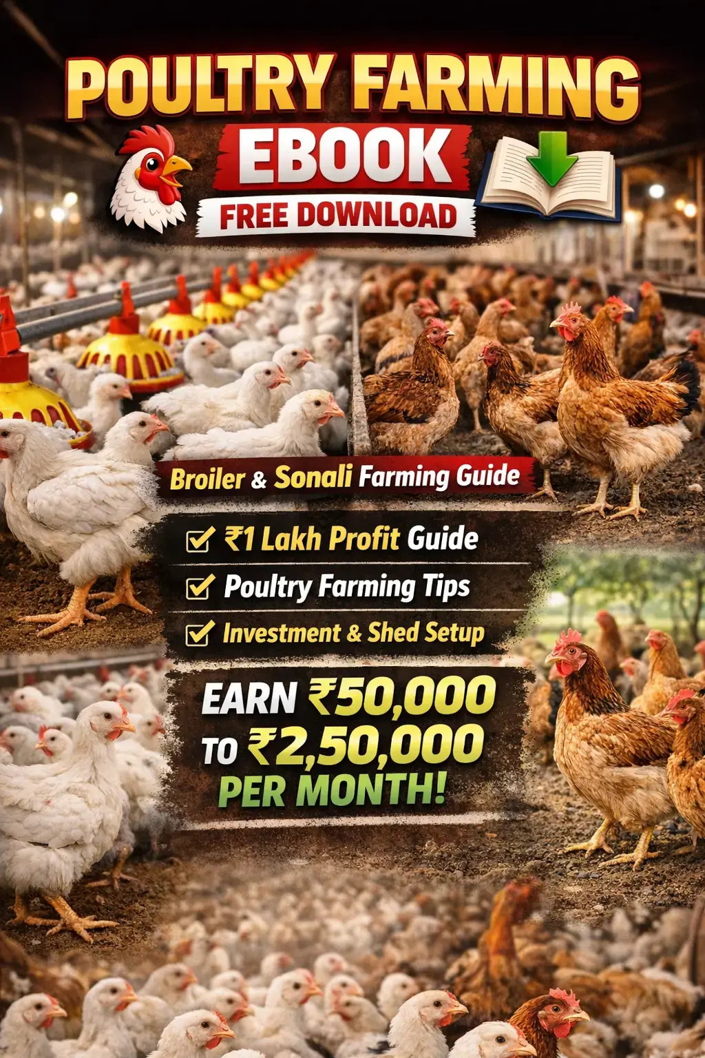 You are in the right place. Poultry farming is one of the most profitable agriculture businesses in India. With proper knowledge and guidance, farmers can earn ₹50,000 to ₹2,50,000 per month.